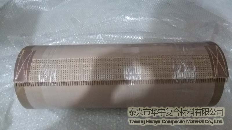 鐵氟龍高溫布輸送帶是由鐵氟龍高溫布制作而成,我司可以根據(jù)客戶要求制作不同的接頭,也可以給帶子做加強(qiáng)邊以延長使用壽命。由于它也具備了鐵氟龍高溫布耐高溫、抗粘、耐腐蝕等優(yōu)點(diǎn),所以正常被用作耐溫烘干機(jī)械的輸送帶,如地毯背膠固化輸送帶、橡膠硫化輸送帶、食品輸送帶等領(lǐng)域。顏色主要有棕色、黑色和白色,常用厚度為0.25mm,0.35mm,0.40mm,0.65mm,0.9mm。